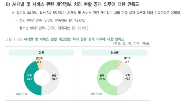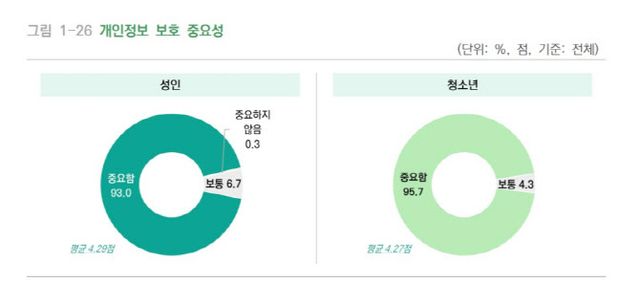 조사 결과, 우리 국민의 대다수(성인 93%, 청소년 95.7%)가 개인정보 보호가 중요하다고 인식하는 것으로 나타났다.