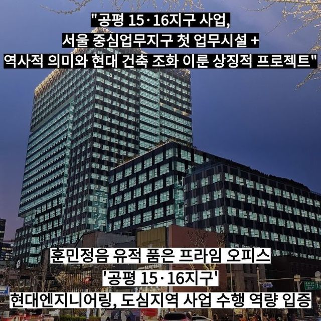 공평 15·16지구는 지하철 종각역(1호선)과 종로3가역(1·3·5호선)을 도보로 이용할 수 있는 핵심 입지에 위치해 우수한 접근성을 갖췄다.