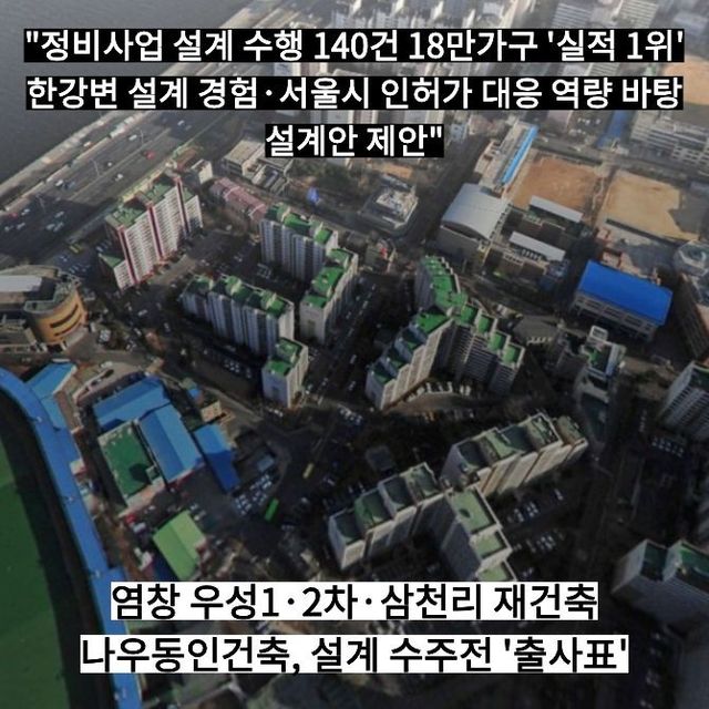 나우동인은 풍부한 한강변 정비사업 설계 경험이 강점이다. 실제 압구정3구역을 포함해 △성수 트리마제 △청담 르엘 △여의도 삼익·공작 등 주요 한강변 사업지에서 설계를 담당한 바 있다. 해당 경험 바탕으로 염창동 입지 장점을 극대화한 배치와 조망, 고급 주거 설계를 구현하겠다는 구상이다.