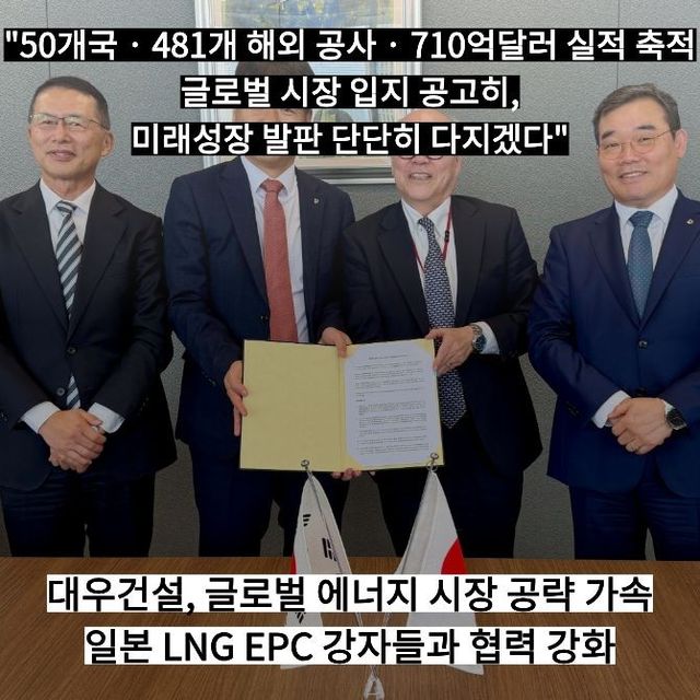 대우건설은 이번 교류 확대·협력 고도화 계기로 일본 기업 설계·기술 역량과 자사 시공·프로젝트 관리 역량을 결합해 글로벌 플랜트·에너지 시장에서 경쟁력을 강화한다는 방침이다. 나아가 도시개발과 신사업 분야에서도 협력 모델을 한층 고도화할 계획이다.