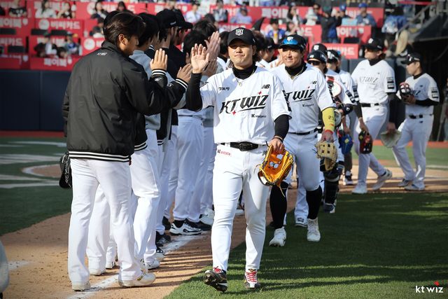 이날 KT는 최원준(우익수)~김상수(2루수)~김현수(지명타자)~장성우(포수)~샘 힐리어드(좌익수)~오윤석(1루수)~배정대(중견수)~장준원(3루수)~이강민(유격수)이 선발로 나섰다.