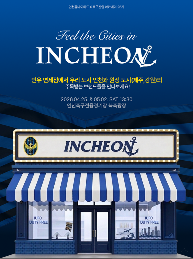 인천 관계자는 “‘인천 유나이티드 면세점’은 한국프로축구연맹 ‘축구산업 아카데미’ 25기 수강생과 함께 기획 및 운영하는 프로젝트로, 단순한 경기 이벤트를 넘어 K리그 최초의 경기장 광장 플랫폼 수익화 모델이자 팬 경험 혁신 사례가 될 것”이라며 “향후 더 많은 도시와 브랜드가 참여하는 지속 가능한 플랫폼으로 확대해 나갈 계획”이라고 밝혔다.