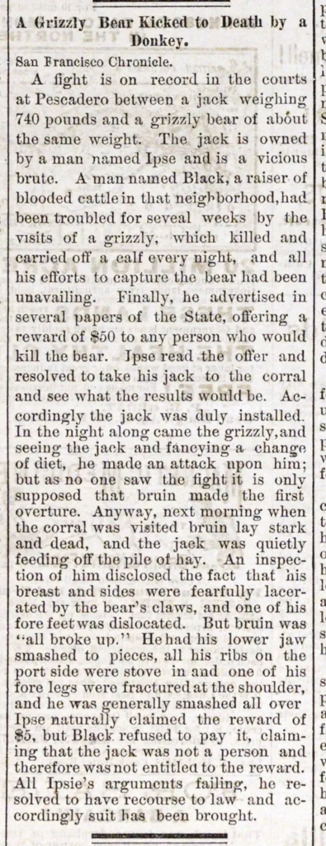 결과: 수컷 당나귀 (승) VS 그리즐리 베어