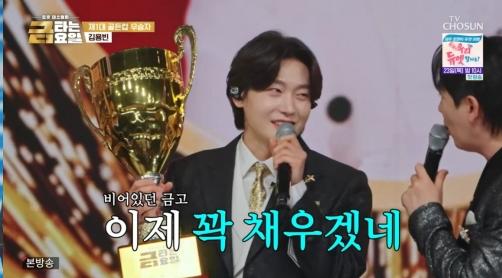 김용빈은 몸통만 한 골든컵을 들고 등장해 시선을 끌었다. 금장 명찰과 넥타이에 이어 “속옷도 금장”이라고 농담해 웃음을 안겼고, “금고를 더 채워야 한다”고 말하며 새 레이스를 향한 의욕도 드러냈다.