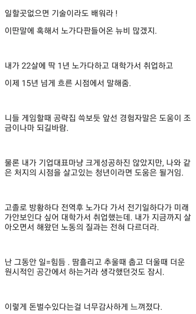 2. 노가다 1년 했지만 공부가 최고의 가성비임