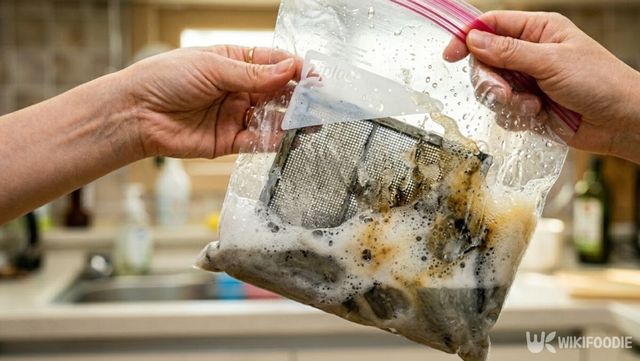 준비물은 필터가 들어갈 만한 크기의 지퍼백, 베이킹소다, 주방세제, 뜨거운 물이 전부다. 후드에서 필터를 분리해 지퍼백 안에 넣고, 베이킹소다 두세 스푼과 주방세제를 적당량 넣은 다음 뜨거운 물을 붓는다. 지퍼백 안의 공기를 최대한 눌러서 빼낸 뒤 입구를 단단히 밀봉하고, 그 상태로 약 1분 동안 전체를 흔들어준다.