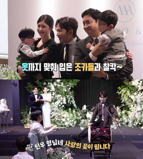 결혼식 사회는 신화 멤버 전진과 앤디가 맡았다. 이민우는 신부를 위해 노래를 부르다 눈물을 보이며 감동을 안겼다.