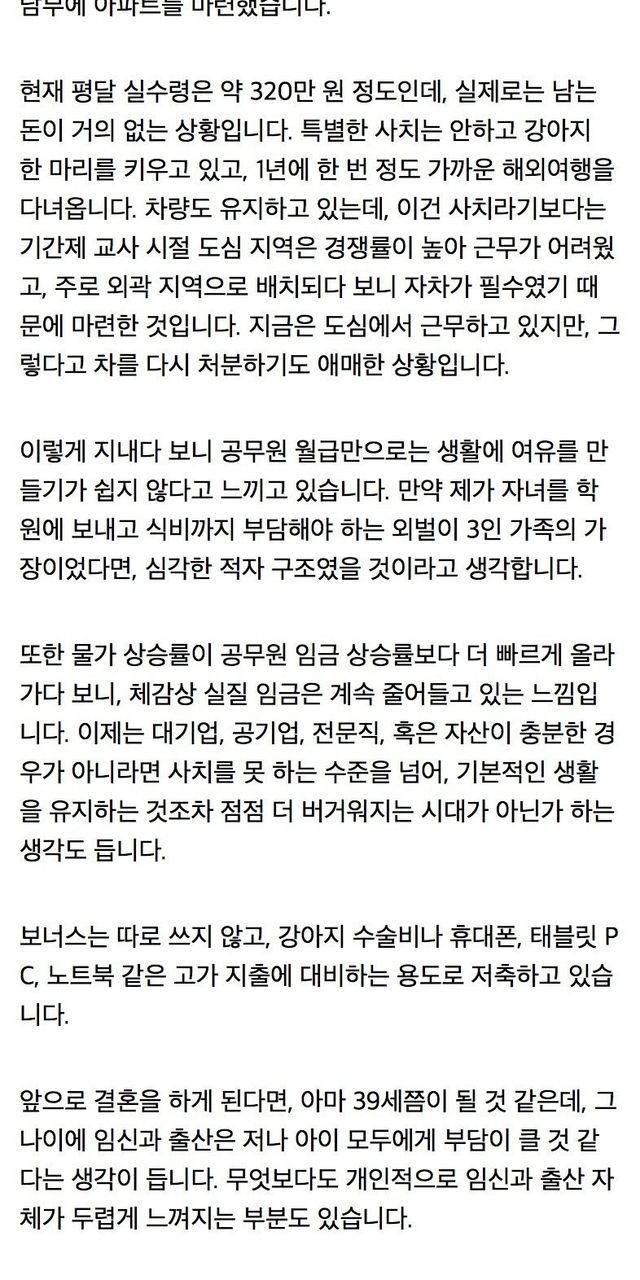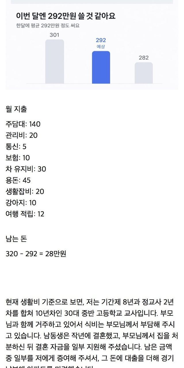 실수령 320만원 교사의 생활비 고민