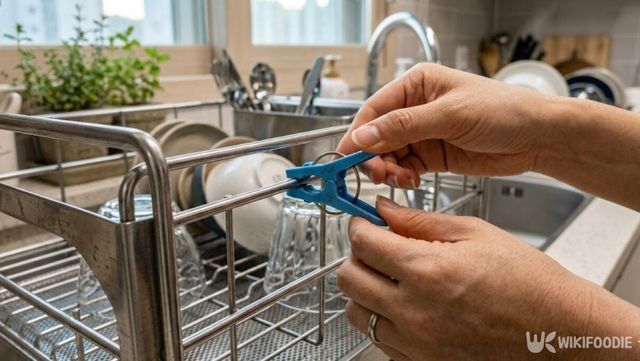 이 문제의 원인은 건조대 설계 방식에 있다. 일반적인 식기건조대는 접시나 컵처럼 바닥이 넓거나 안정적인 형태의 식기를 기준으로 설계되어 있어 물병처럼 바닥이 좁고 무게중심이 위로 쏠린 용기를 안정적으로 지지하지 못한다. 특히 보온병이나 긴 텀블러는 길이 대비 바닥 면적이 작아 조금만 외부 자극이 가해져도 쉽게 넘어진다. 물병 전용 거치대를 따로 구매하면 해결되지만, 집에 이미 있는 빨래집게 두 개로 같은 효과를 낼 수 있다.