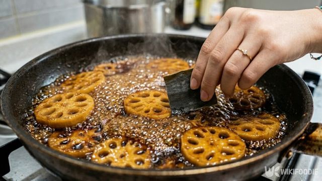 조리는 중간에 물엿 3큰술 중 절반을 먼저 넣어 진행한다. 한 번에 넣기보다 나눠 넣어야 윤기가 자연스럽게 살아난다. 약 10분 이상 조리한 뒤 남은 물엿을 넣고 다시 5분 정도 더 졸인다. 이 과정에서 연근 속까지 간이 서서히 스며든다.