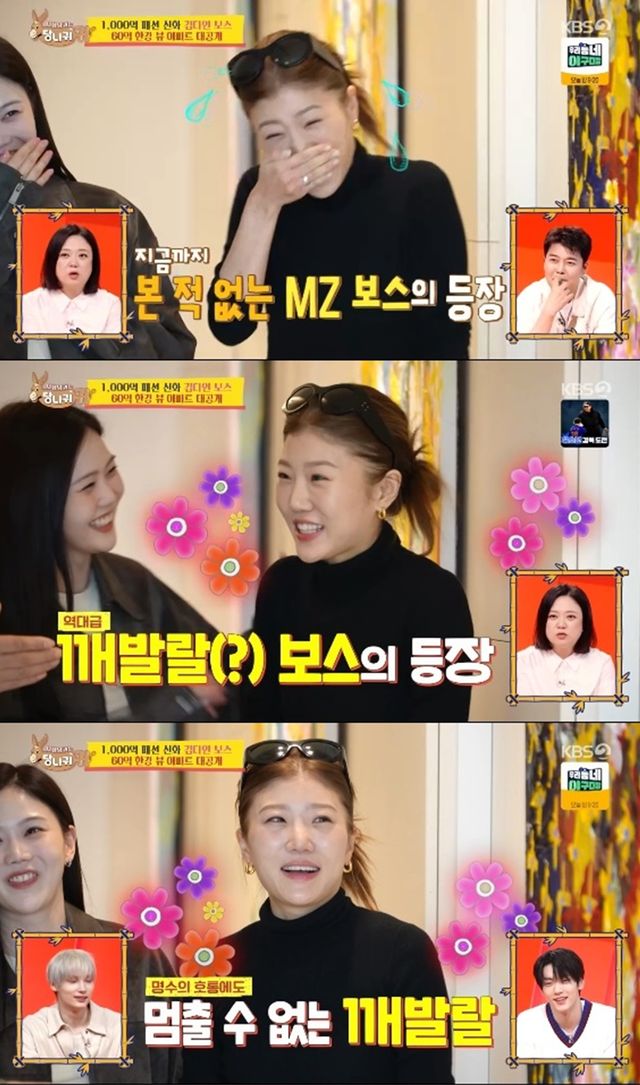 박명수는 김다인을 향해 "조용히 좀 해 달라. 이렇게 까부는 보스 처음 봤다"며 보스는 묵직해야 한다고 덧붙였다.