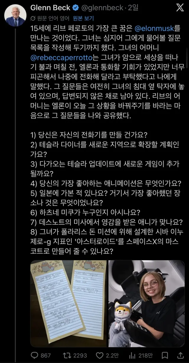 소녀가 스페이스x 마스코트로 만들어달라는 그림