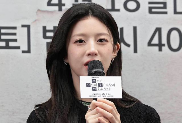 배우 고윤정이 17일 서울 마포구 상암동 스탠포드 호텔에서 열린 JTBC 드라마 '모두가 자신의 무가치함과 싸우고 있다'(이하 모자무싸) 제작발표회에 참석해 인사말을 하고 있다. '모자무싸'는 잘난 친구들 사이에서 혼자만 안 풀려 시기와 질투로 괴로워 미쳐버린 인간의 평화 찾기를 따라가는 드라마다. / 뉴스1
