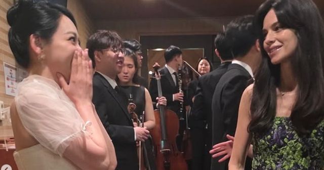 김소현은 이어 “오랜 인연 김유영 예술감독님, 오랜만에 만난 송중기님, 친절하고 아름다우신 케이티님”이라고 덧붙이며 케이티의 실물 미모와 인품에 대해 아낌없는 칭찬을 전했다. 또 다른 사진에서는 세 사람과 가온솔로이스츠 단원들이 함께 포즈를 취하며 공연의 여운을 나누는 모습도 담겼다. 송중기는 깔끔한 슈트 차림으로 특유의 부드러운 이미지를 드러냈고, 케이티 역시 화려한 패턴의 드레스로 세련된 분위기를 더했다.
