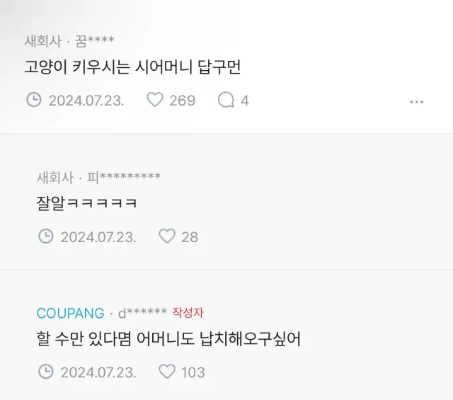 고양이 키우는 시어머니 vs 고양이 좋아하는 며느리