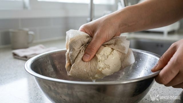 먼저 연두부는 물기를 빼는 것이 가장 중요하다. 안성재 셰프는 "이걸 해야만 전을 부치는 것이 가능하다"며 수분 제거의 중요성을 여러 번 강조했다. 키친타월 등으로 꾹 눌러 물기를 뺀 연두부를 볼에 넣고 곱게 으깬다.