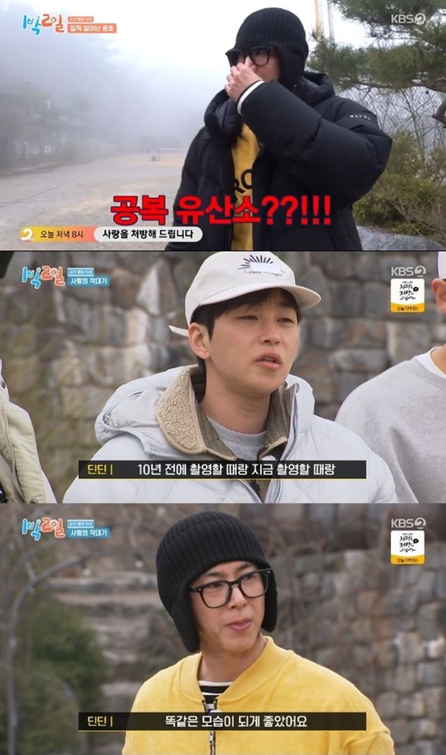 19일 방송된 KBS 2TV '1박 2일 시즌4'에서는 유노윤호가 퇴근을 마다하고 등산을 하는 모습이 전파를 탔다.
