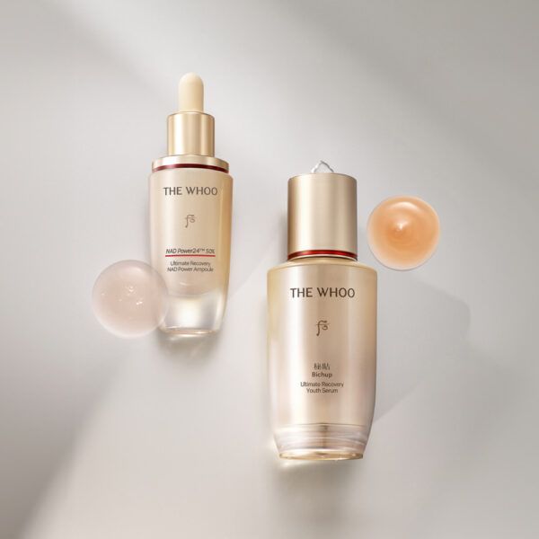 더후는 브랜드의 안티에이징 노하우를 집약한 ‘비첩 자생 NAD 파워 앰풀’을 새롭게 출시했습니다. 단 한 방울의 앰풀 안에 무려 550억 개에 달하는 NAD 리포솜이 응축되어 있어 그야말로 압도적인 스킨 리뉴얼 효과를 선사하는 하이엔드 제품인데요. 핵심 성분인 ‘NAD Power24™’가 무너진 피부 장벽을 튼튼하게 만들어주고 외부 자극으로 지친 피부를 빠르게 진정시키는 데 탁월한 효과를 발휘합니다. 스포이트로 덜어내어 피부 결을 따라 부드럽게 펴 바르면 끈적임 없이 빠르게 흡수되며 바르는 즉시 매끈하고 보들보들해진 윤기를 체감할 수 있습니다. 특히 화장하기 전 단계에 발라주면 베이스 메이크업이 들뜸 없이 완벽하게 밀착되어 코덕들 사이에서는 이른바 ‘화잘먹 앰풀’로 입소문을 타며 폭발적인 재구매율을 기록하고 있다고 하네요.