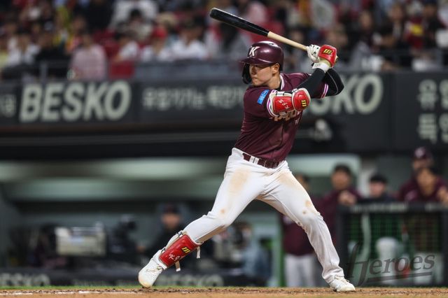 원정팀 키움 히어로즈의 타격 훈련을 지켜보던 이강철 KT 위즈 감독의 눈이 한 선수에 꽂혔다. 이 감독은 "스윙이 깔끔하다. 우리한테도 2안타(17일 경기)를 치더니.. 어쩐지 상위 라운더더라"며 감탄했다. 감독의 시선 끝에 머문 선수는 키움 신인 내야수 김지석이었다.