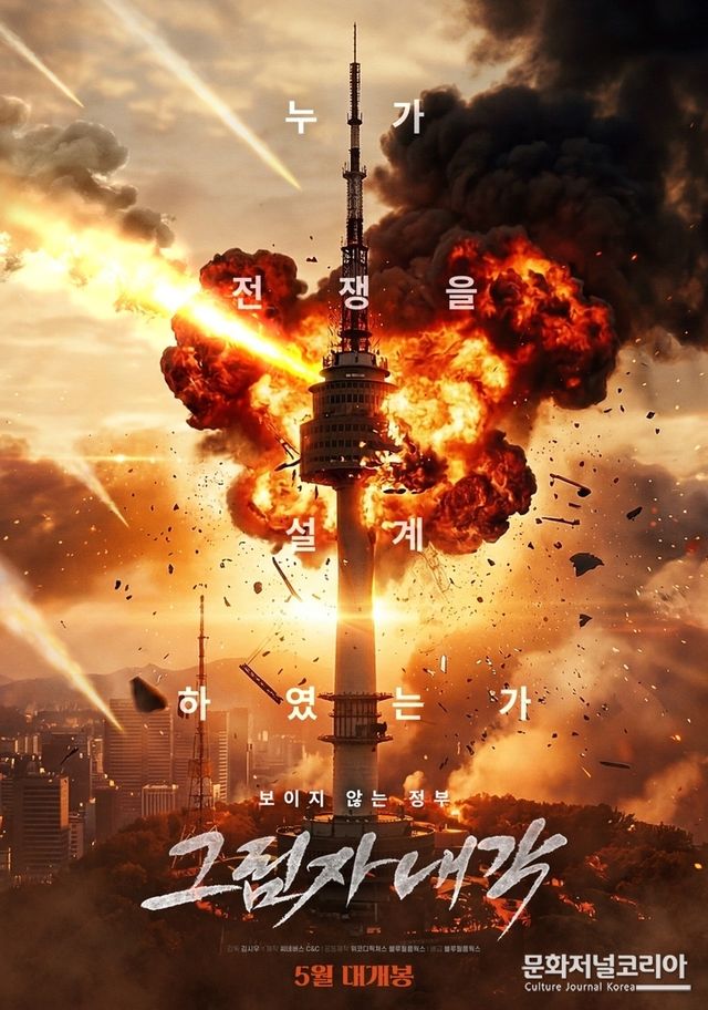 메인 포스터에는 서울 남산타워가 거대한 폭발에 휩싸인 강렬한 장면이 시선을 사로잡는다. ‘누가 전쟁을 설계하였는가’라는 문구는 역사와 현대를 관통하는 정치적 갈등과 내전을 암시하며, 관객으로 하여금 질문과 반성을 던진다. 이 폭발하는 서울 남산타워는 상징적으로 혼돈 속 권력의 붕괴와 그 배경에 숨겨진 그림자 내각의 실체를 표현한다.