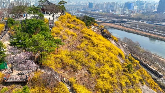 응봉산은 서울에서 봄이 가장 먼저 오는 '개나리 산'으로 유명하다. 과거 도시 개발 과정에서 산자락의 모래흙이 흘러내리는 것을 막기 위해 개나리 약 20만 그루를 심기 시작하면서 '개나리 산'이라는 별칭이 붙었다. 이후 매년 봄이면 응봉산 팔각정 일원에서 개나리 축제가 열린다.