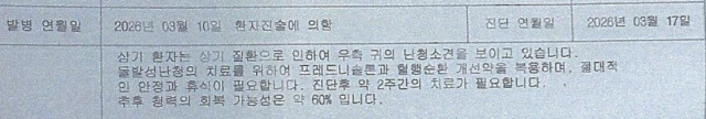 그 다음 주부터 출근이 허락됐는데, 출근한 날 갑자기 소리가 잘 들리지 않았다. 귀와 머릿 속에서 '삐'하는 소리가 크게 들렸고 멈추지 않았다. 다음날 병원을 찾은 투 씨에게 의사는 오른쪽 귀 돌발성 난청을 진단하고 '추후 60%까지는 회복할 수 있다'고 했다.