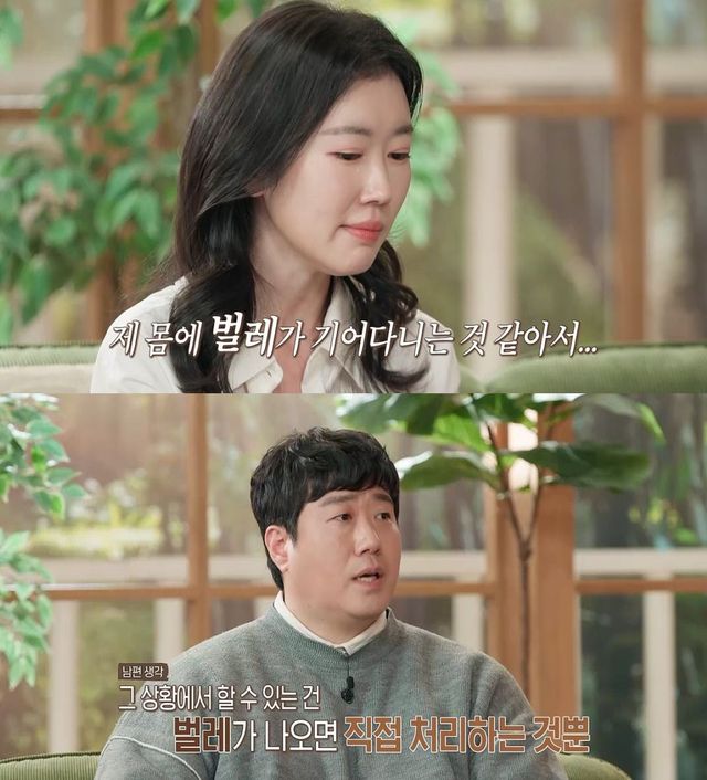 특히 아내는 집안을 기어다니던 벌레를 떠올리며 “지금도 트라우마처럼 남아 있다. 아기 이불 위에도 벌레가 기어다녔다. 그때도 남편은 벌레가 나오면 잡으면 된다는 식으로 신경도 안 썼다”라고 토로한다.