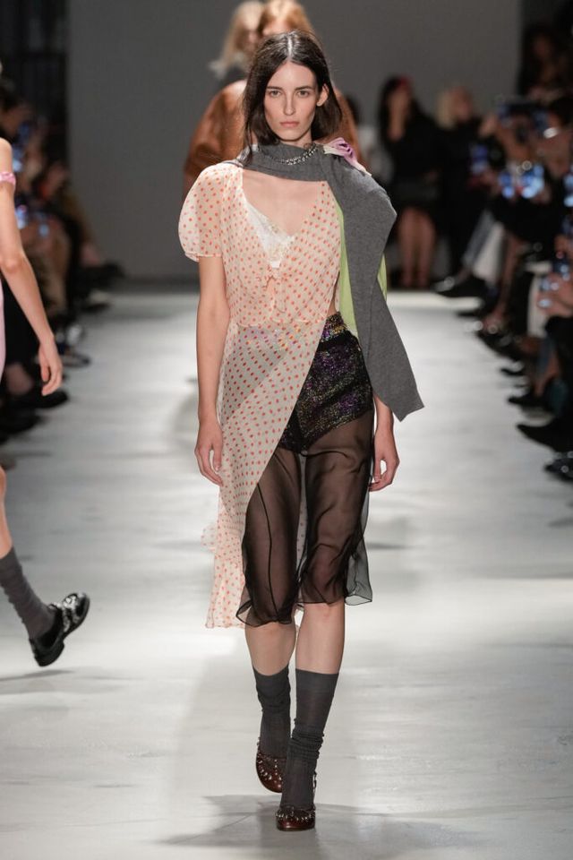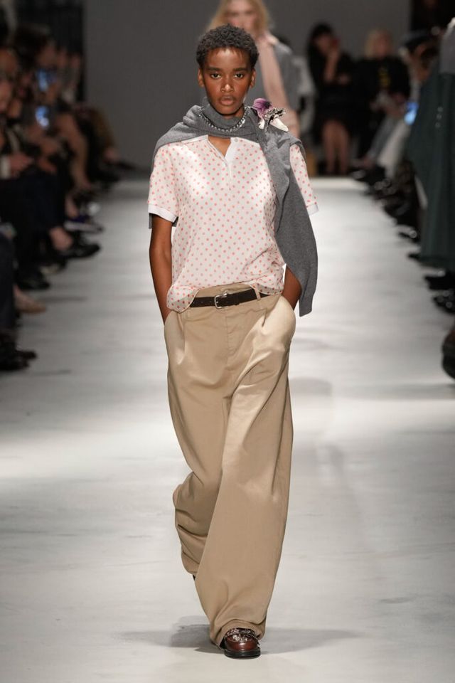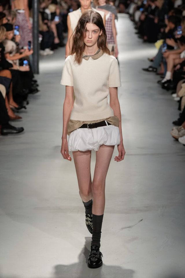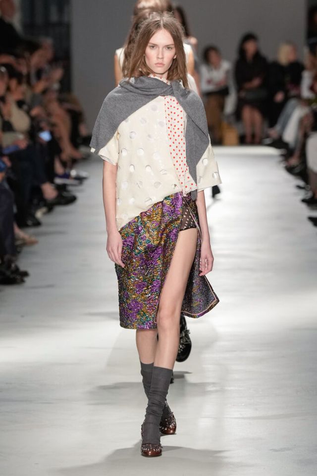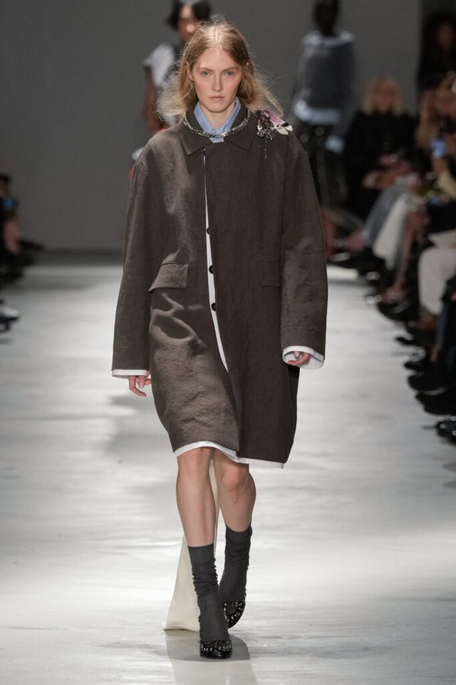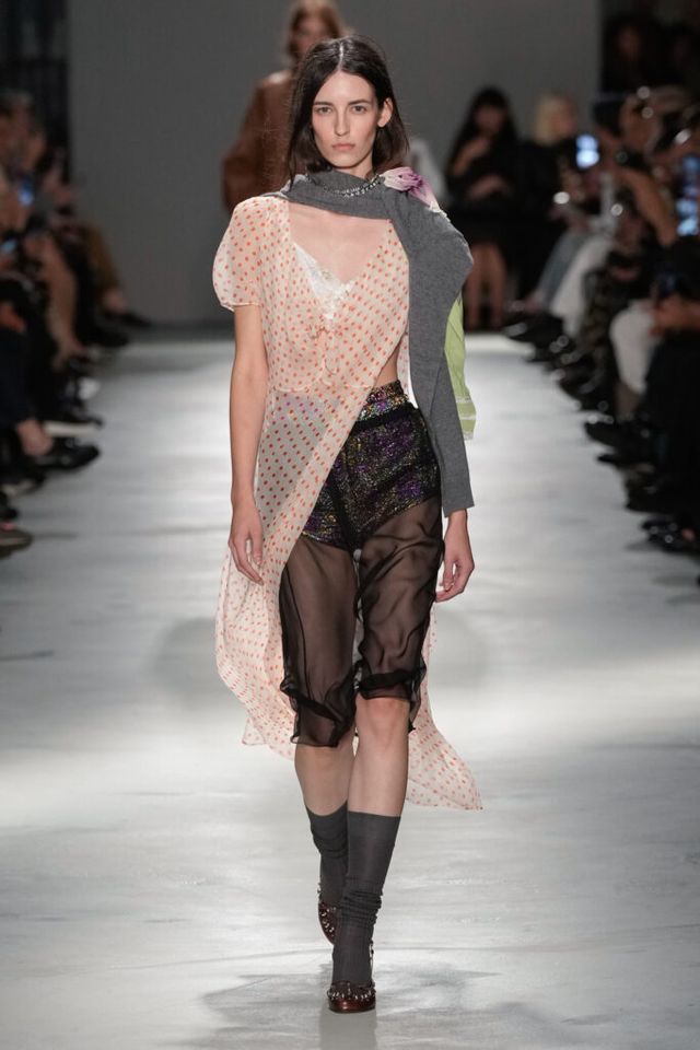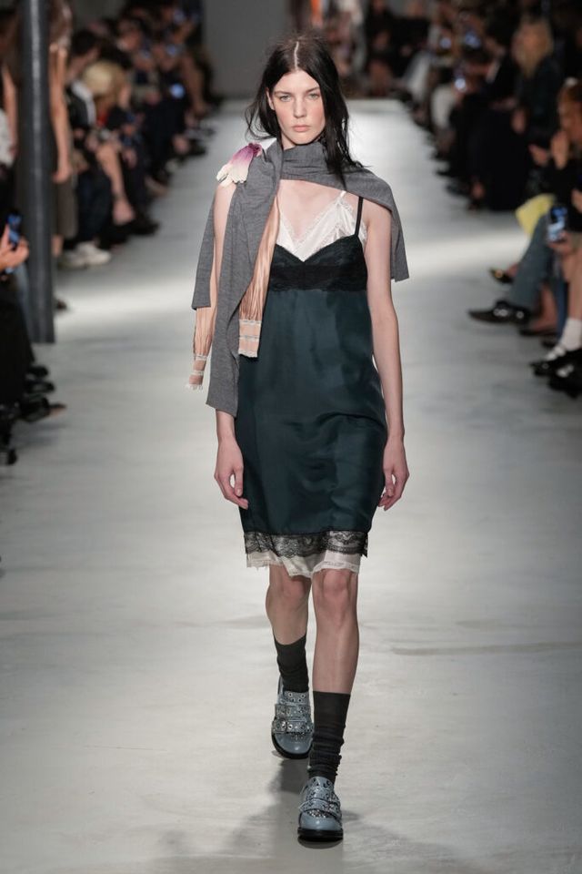 NOTE “저는 지난 세기의 수많은 미적 변주를 해석하고자 했습니다. 오랫동안 여성 패션을 규정한 고전적 실루엣을 새롭게 재구성하고 싶었죠.” 장르와 레퍼런스의 혼재, 다채로운 레이어링의 변주, 남성복의 일부를 차용한 알레산드로 델라쿠아의 ‘찬란한 집착’이 빛을 발한 쇼. 특히 모델들의 어깨와 목에 아무렇지 않은 듯 자리한 그레이 스웨터와 크리스털 네크리스, 그레이 삭스 스타일링은 이번 컬렉션의 ‘한 끗 차이’를 낳으며 전체적인 완성도를 끌어올렸다.