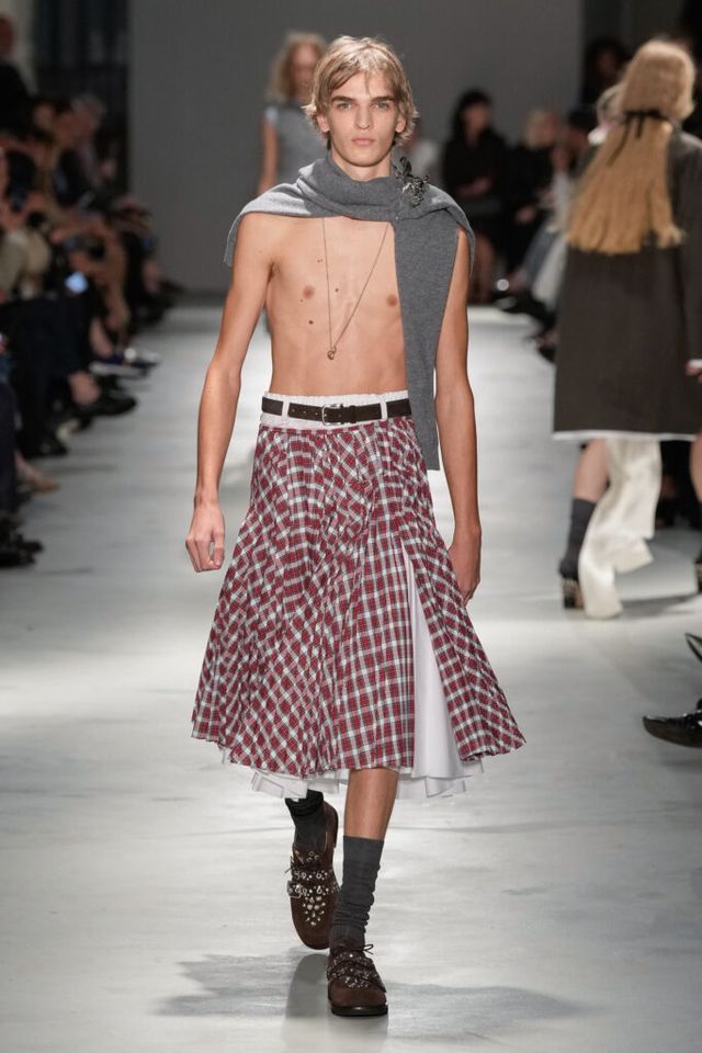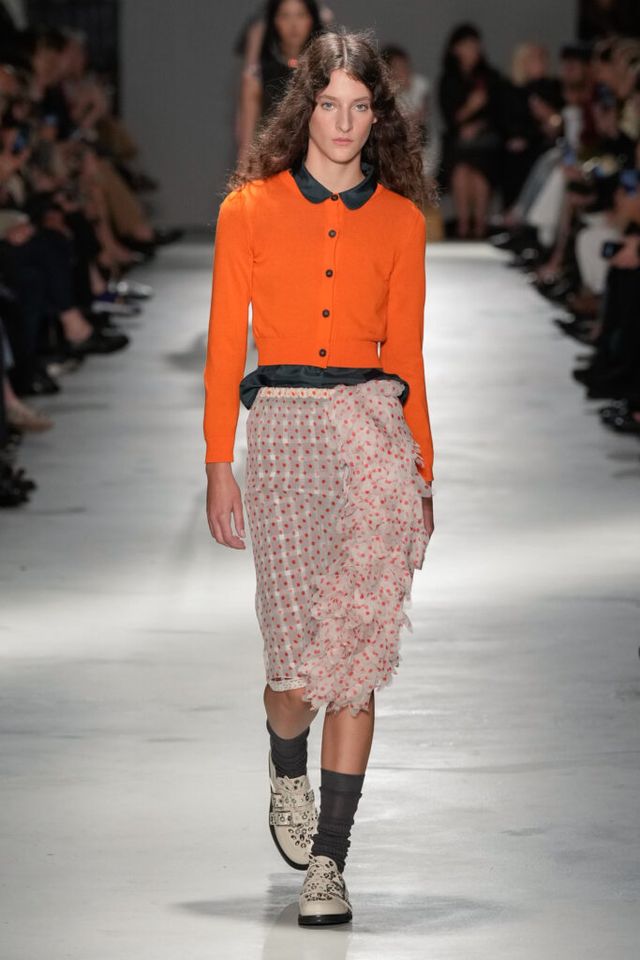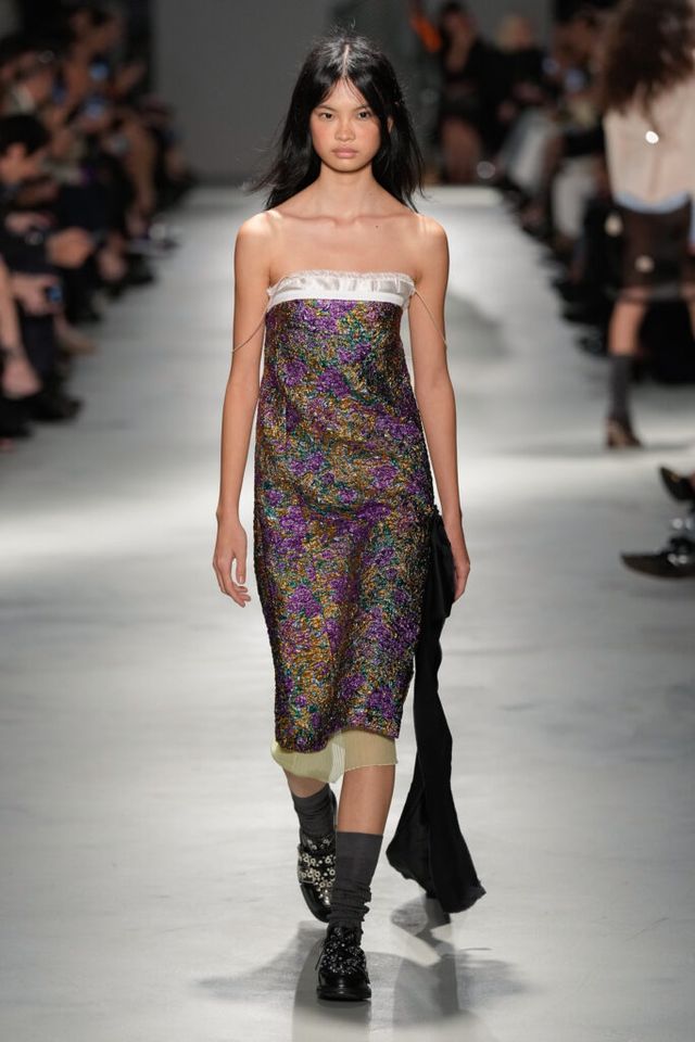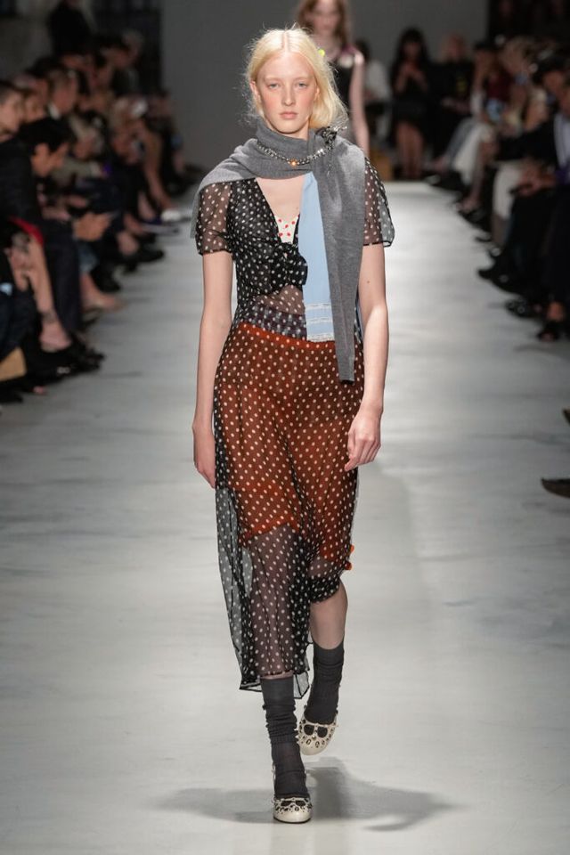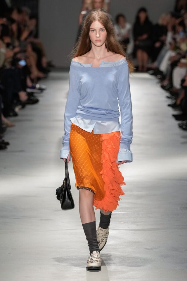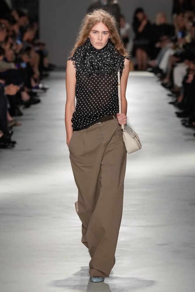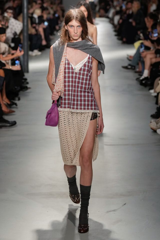 NOTE “저는 지난 세기의 수많은 미적 변주를 해석하고자 했습니다. 오랫동안 여성 패션을 규정한 고전적 실루엣을 새롭게 재구성하고 싶었죠.” 장르와 레퍼런스의 혼재, 다채로운 레이어링의 변주, 남성복의 일부를 차용한 알레산드로 델라쿠아의 ‘찬란한 집착’이 빛을 발한 쇼. 특히 모델들의 어깨와 목에 아무렇지 않은 듯 자리한 그레이 스웨터와 크리스털 네크리스, 그레이 삭스 스타일링은 이번 컬렉션의 ‘한 끗 차이’를 낳으며 전체적인 완성도를 끌어올렸다.