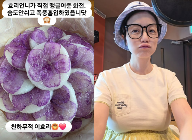 20일 안영미는 자신의 SNS에 “효리 언니가 직접 만들어 준 화전. 숨도 안 쉬고 폭풍 흡입했습니다”라는 글과 사진 한 장을 게재했다.