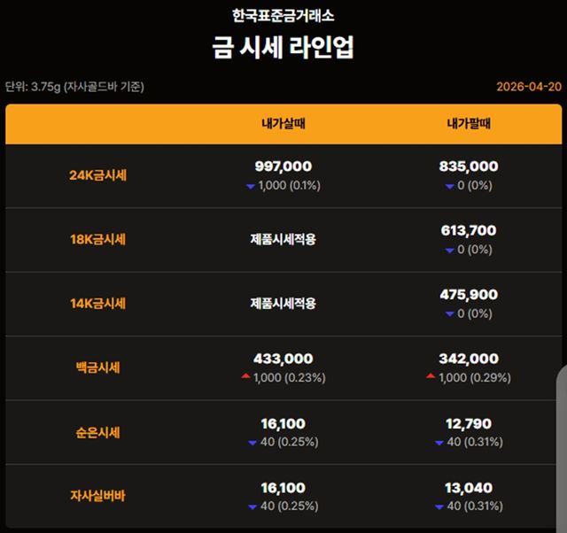 순금 : 매입가 99만 7000원 / 매도가 83만 5000원