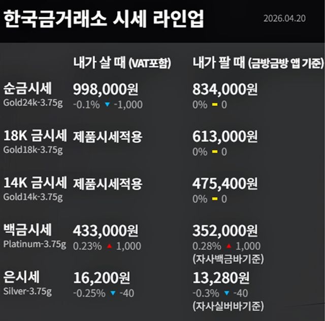 순금 : 매입가 99만 8000원 / 매도가 83만 4000원