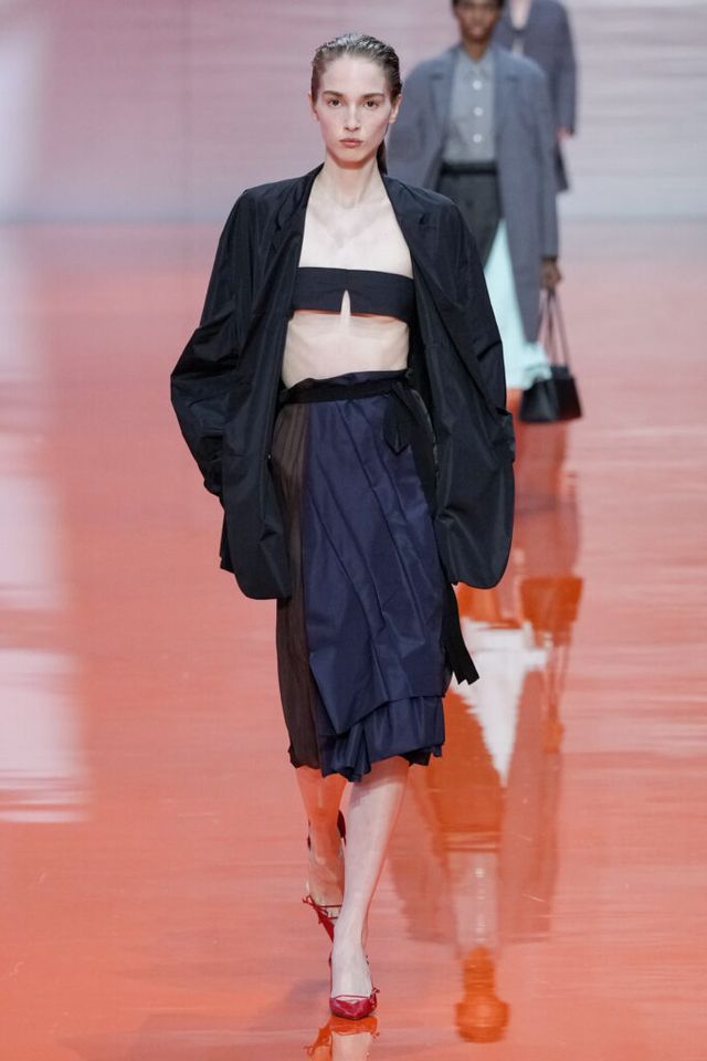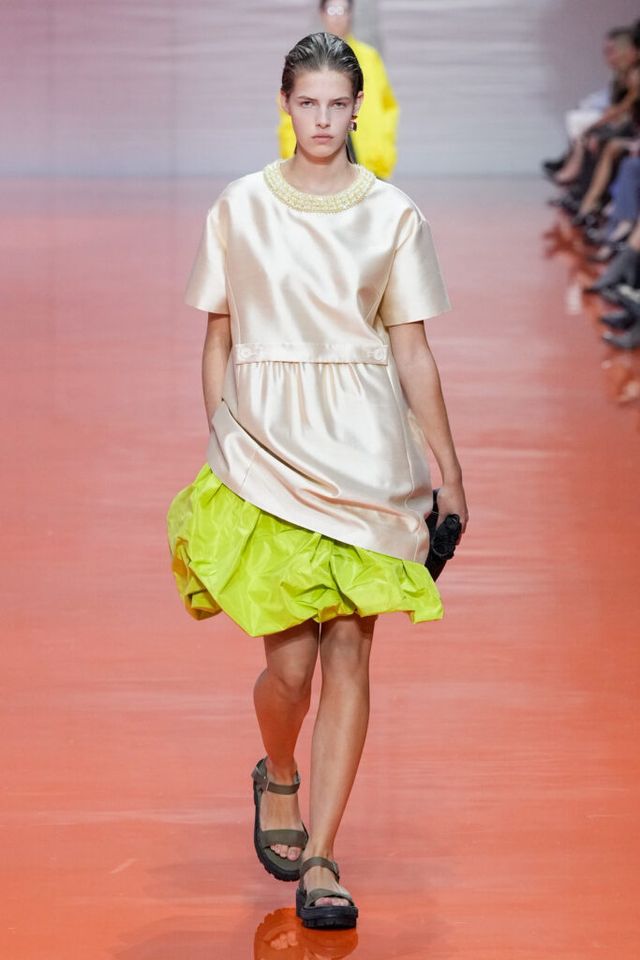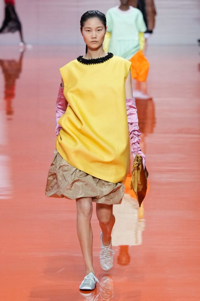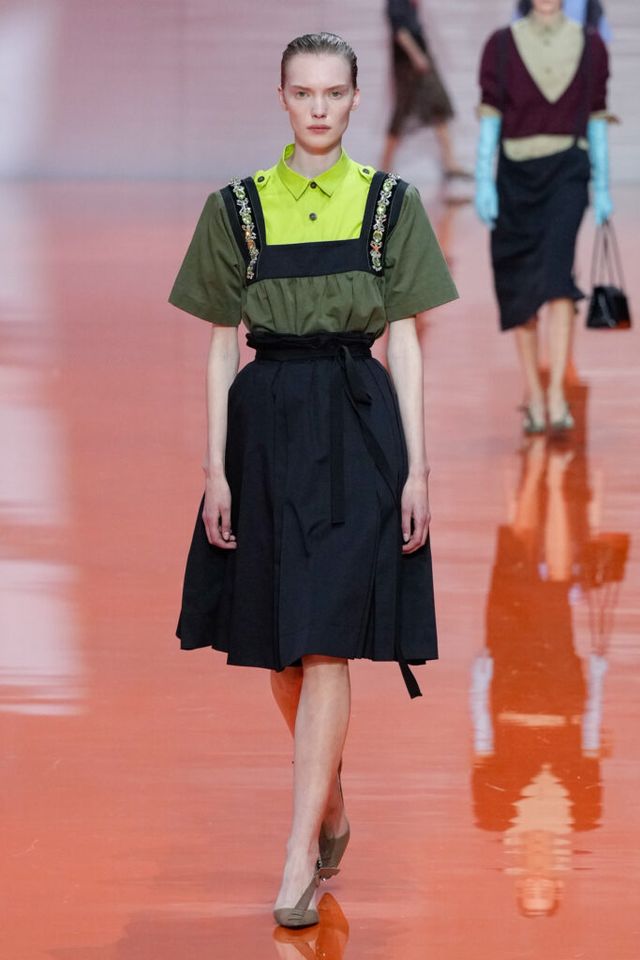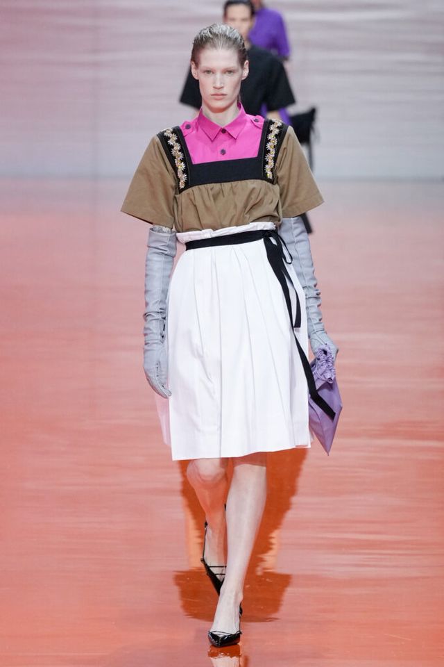 NOTE 미우치아 프라다와 라프 시몬스는 현대 문화가 만들어내는 과잉과 불확실성에 대한 자신들의 패션적 대안을 런웨이 위에 시각화했다. 옷을 통해 걸러내고 정제하는 것, 서로 다른 요소를 예상치 못한 방식으로 조합하고 병치하거나 근본적인 속성을 재해석하는 것. 이들은 이러한 행위를 통해 전형적인 여성성을 타파하고, 철저하게 전복하며, 비로소 자유라는 감각 위에서 패션을 재구성한다. 유니폼의 우아한 변주를 선두로, 쓸모없는 브라(Useless Bra)의 믹스 매치, 자유분방한 실루엣의 다채로운 의상들은 지루할 틈 없는 신선함을 안기며 감동적인 피날레를 선사했다.