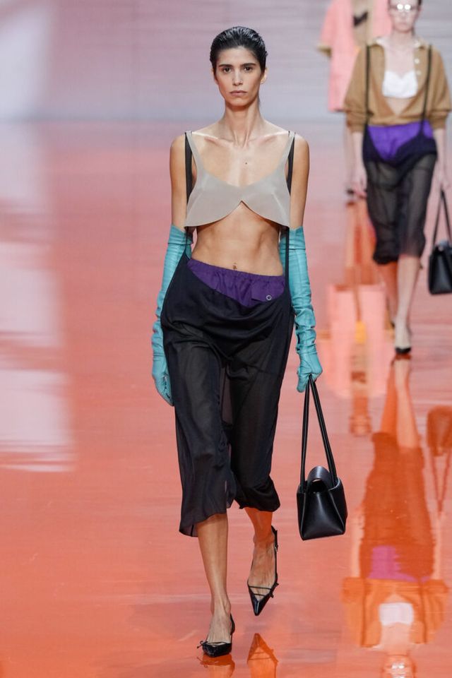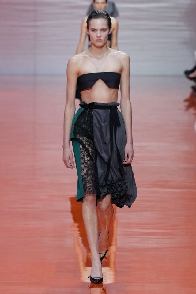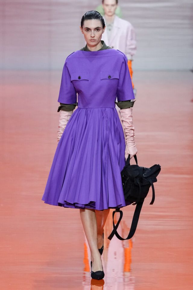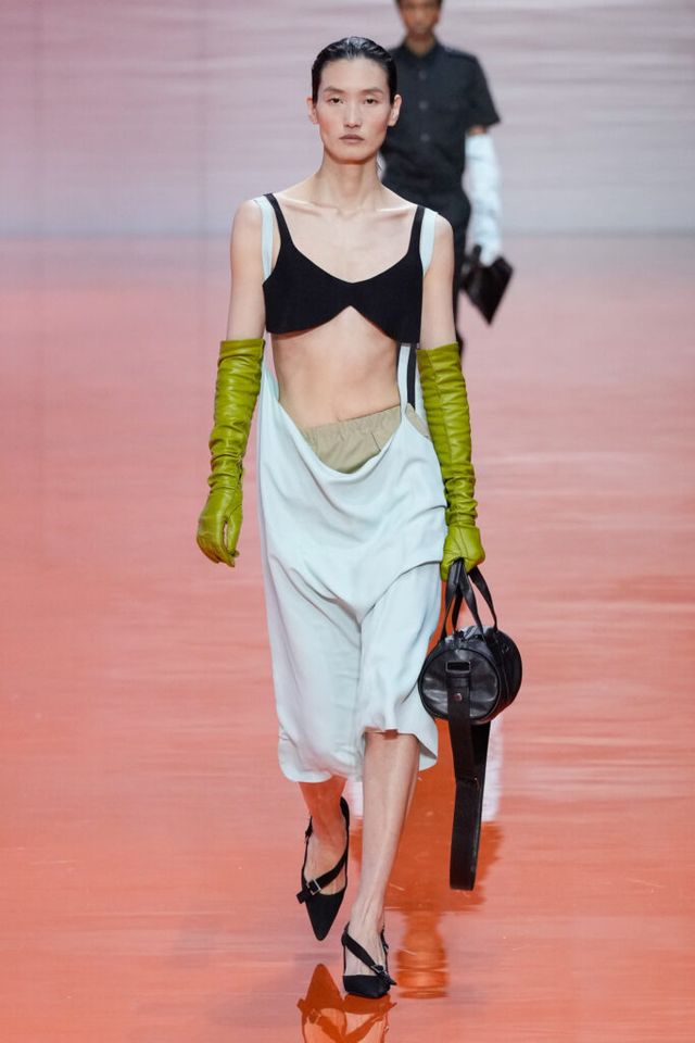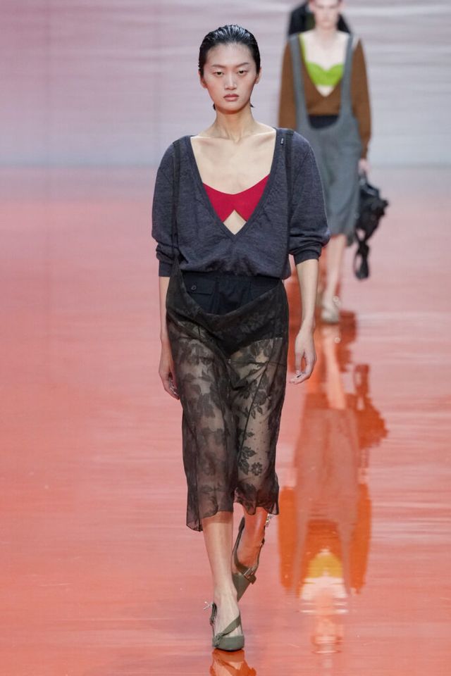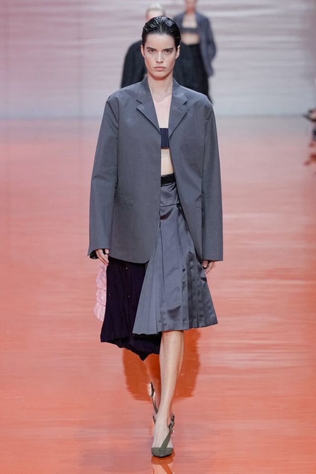 NOTE 미우치아 프라다와 라프 시몬스는 현대 문화가 만들어내는 과잉과 불확실성에 대한 자신들의 패션적 대안을 런웨이 위에 시각화했다. 옷을 통해 걸러내고 정제하는 것, 서로 다른 요소를 예상치 못한 방식으로 조합하고 병치하거나 근본적인 속성을 재해석하는 것. 이들은 이러한 행위를 통해 전형적인 여성성을 타파하고, 철저하게 전복하며, 비로소 자유라는 감각 위에서 패션을 재구성한다. 유니폼의 우아한 변주를 선두로, 쓸모없는 브라(Useless Bra)의 믹스 매치, 자유분방한 실루엣의 다채로운 의상들은 지루할 틈 없는 신선함을 안기며 감동적인 피날레를 선사했다.