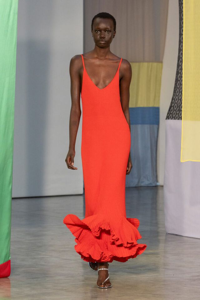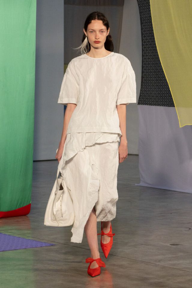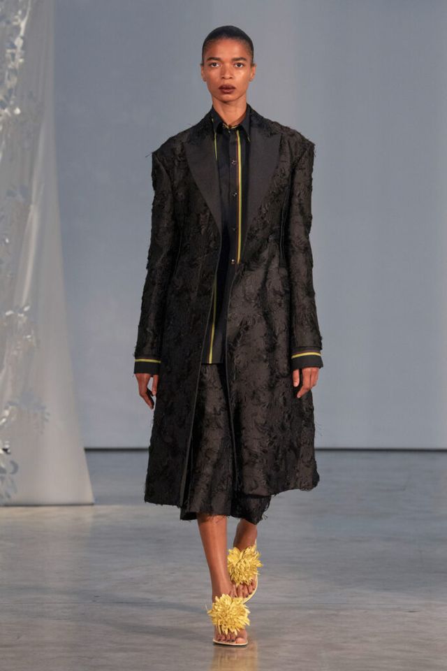 NOTE 프로엔자 스쿨러에 입성한 레이첼 스콧은 짧은 시간 안에 브랜드의 언어와 미학을 속성으로 습득했다. 하지만 그의 결과물은 보다 풍부한 질감으로 표현되었고, 자신만의 터치를 더하며 한층 매력적인 ‘서곡’을 완성해낸다. 전형성을 깬 우아한 스커트 셋업, 그래픽적으로 표현한 국화 프린트, 하우스 고유의 롱 앤 린 실루엣을 풍성하게 펼쳐 보인 그.여성 디자이너 특유의 사려 깊은 친밀감과 부드러움이 컬렉션 전반에 흘러넘쳤고, 자연스레 다음 컬렉션을 기대하게 했다.