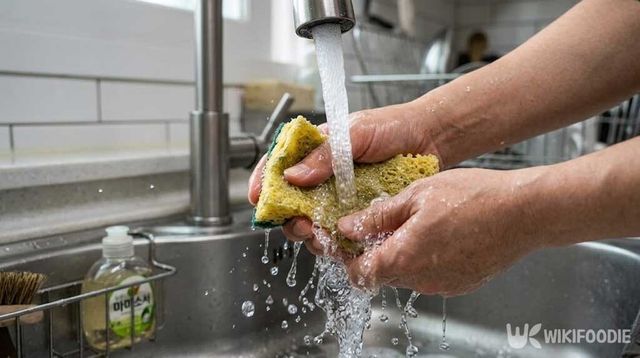 가장 빠르고 간편한 방법은 전자레인지를 활용하는 것이다. 중요한 점은 수세미에 물을 충분히 흡수시키는 것에서 시작한다.