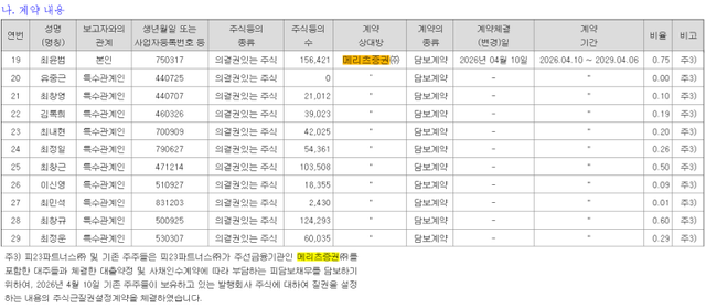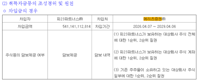 하지만 상장사가 수천억원 규모의 차입처와 법적 권리관계인 담보권자를 전혀 다른 법인으로 기재한 것은 매우 이례적이다. 특히 담보계약은 대주주 일가의 개인 재산권에 대한 질권자가 누구인지 명시하는 핵심 정보임에도, 계약 당사자조차 잘못 기재한 채 공시를 냈다는 비판을 피하기 어렵다.