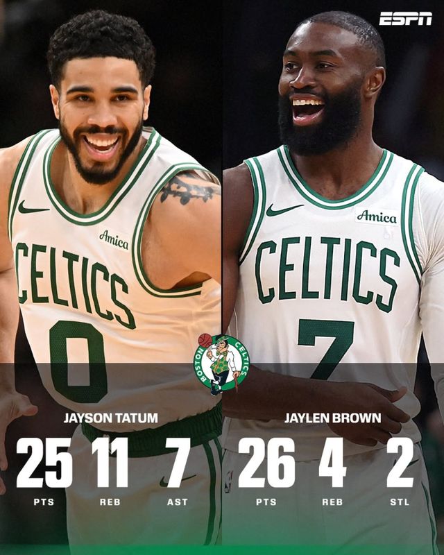테이텀은 32분25초 동안 25점 11리바운드 7어시스트를 기록하며 제일런 브라운(26점 4리바운드)과 함께 팀 승리를 이끌었다.