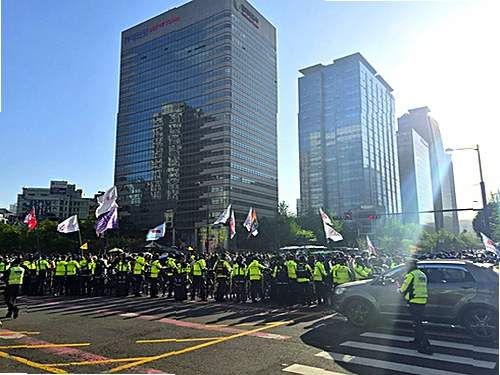 '교통 약자 이동권 보장법 제정 촉구! 차별버스 아웃 직접 행동'이라는 문구가 담긴 대형 현수막이 도로 위에 펼쳐졌고, 일반 차량들은 버스 전용 차로로 우회할 수밖에 없었다. 본대에 잠시 합류했던 시위대는 퇴근 인파가 몰리는 오후 5시 8분 다시 세종대로 사거리 일대 약 200m 구간을 막아섰다.