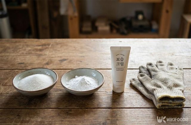 무엇보다 중요한 것은 처음부터 묻지 않게 하는 것이다. 작업을 시작하기 전에 손에 보습크림을 충분히 발라두면 얇은 막이 생긴다. 이 막 덕분에 접착제가 피부에 바로 달라붙지 않고, 묻더라도 훨씬 쉽게 떨어진다.