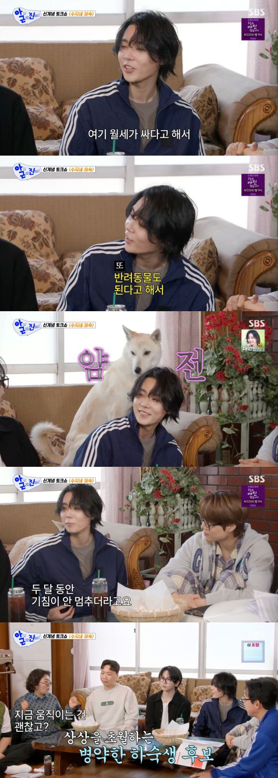 이날 방송에는 던의 반려견 햇님이도 함께 등장해 화제를 모았다. 던은 반려동물 동반이 가능하다는 소문을 듣고 하숙집을 찾아왔다며 애정을 드러냈다. 현장에 함께한 출연진들은 유독 차분하고 의젓한 햇님이의 모습에 감탄을 금치 못했다.
