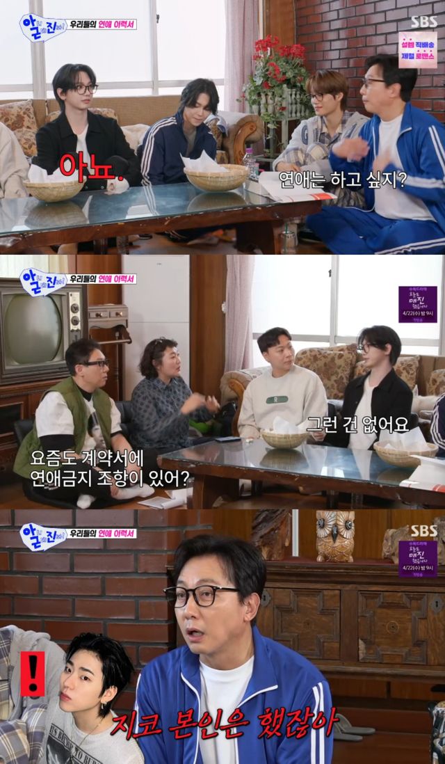 뿐만 아니라 명재현은 연애를 언급하면서 "연애를 하면 큰일 난다. 연애 금지 조항이 있는 건 아닌데, 지코 형이..."라고 소속사 대표 지코를 언급했다.
