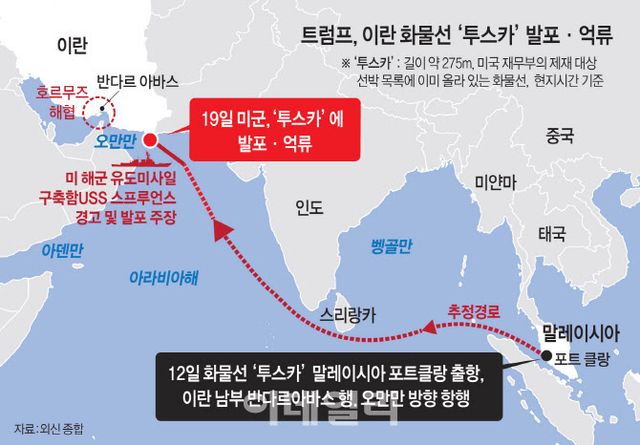 군사적 긴장도 한층 고조됐다. 미국 해군은 오만만에서 이란 국적 화물선을 향해 발포한 뒤 나포했으며, 이는 미국이 최근 도입한 해상 봉쇄 전략 이후 첫 사례다.