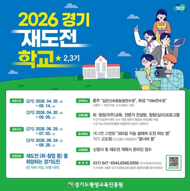 [파이낸셜경제=김영란 기자] 경기도와 경기도평생교육진흥원은 취업이나 창업 실패를 경험한 도민의 재기를 지원하기 위해 오는 20일부터 ‘2026년 경기 재도전학교’ 2~3기 참가자를 각각 55명 내외로 모집한다.