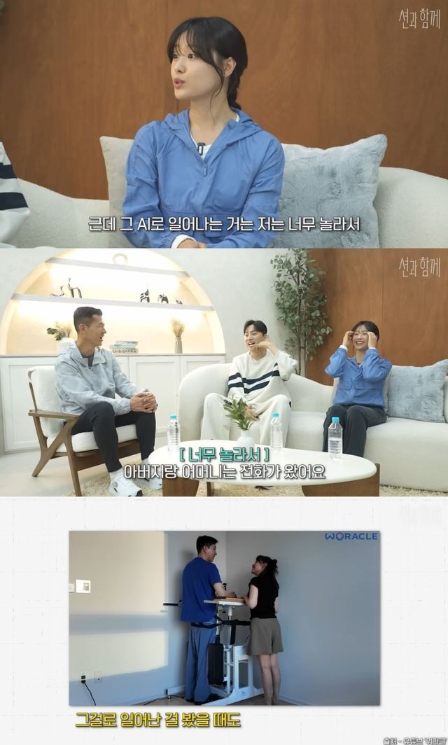 송지은은 "오빠가 재활 기립기가 있다. 재활 도구로 일어난 걸 봤을 때도 너무 감동적이었다. 그런데 AI로 일어나는 건 너무 놀라고 벅찼다"고 전했다.
