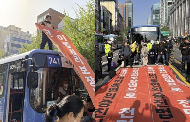 이날 시위 과정에서 라이브 방송을 진행한 활동가들은 “대한민국 수도라고 하는 서울에서도 저상버스 도입률은 80%에 불과하다. 교통약자와 장애인들이 함께 살 수 있는 대한민국을 외치기 위해 저희는 오늘도 외치고 있다”며 “장애인들의 권리가 침해받아왔다”고 했다.