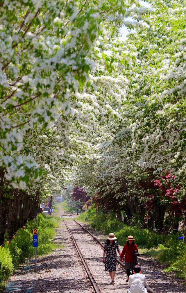 특히 철길을 따라 약 600m가량 이어지는 구간은 양옆의 이팝나무 가지가 서로 맞닿아 자연스러운 터널을 형성한다. 바람이 불 때마다 꽃잎이 눈송이처럼 철길 위로 떨어지는 모습은 영화 속 한 장면을 방불케 한다. 인위적으로 조성된 공원에서는 느낄 수 없는 세월의 흔적과 자연의 조화가 이곳만의 독특한 아우라를 완성한다.