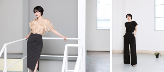 베스트와 팬츠 셋업은 군더더기 없는 테일러링으로 도회적인 무드를 강조했다. 러플 디테일이 더해진 블라우스와 스커트 스타일링은 화사하면서도 고급스러운 분위기를 더했다.