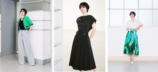 이 밖에도 그린 컬러 가디건과 데님 팬츠를 활용한 캐주얼한 스타일, 자연스럽게 흐르는 블라우스와 스커트로 완성한 가벼운 여름 룩도 함께 공개됐다.