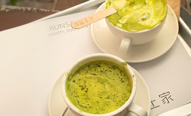 그날 내가 주문한 두 잔의 맛차 라떼. 하나는 내가 마실 수 없고, 하나는 내가 마실 수 있는.